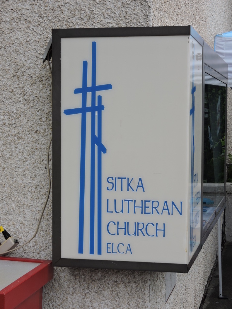 Literally in the middle of town, in the middle of the street, even, was St. Michael's Russian Orthodox Church, an important piece of Sitka's history and pictured above. We walked around outside and thought about going to see the inside, but when we learned the cost was $5 per person, we crossed the street to another church, where we looked around for free, were offered a guided tour and a bag of popcorn! Feeling right at home, we declined the tour, but spent some pleasant time with the ELCA volunteer who showed us around.