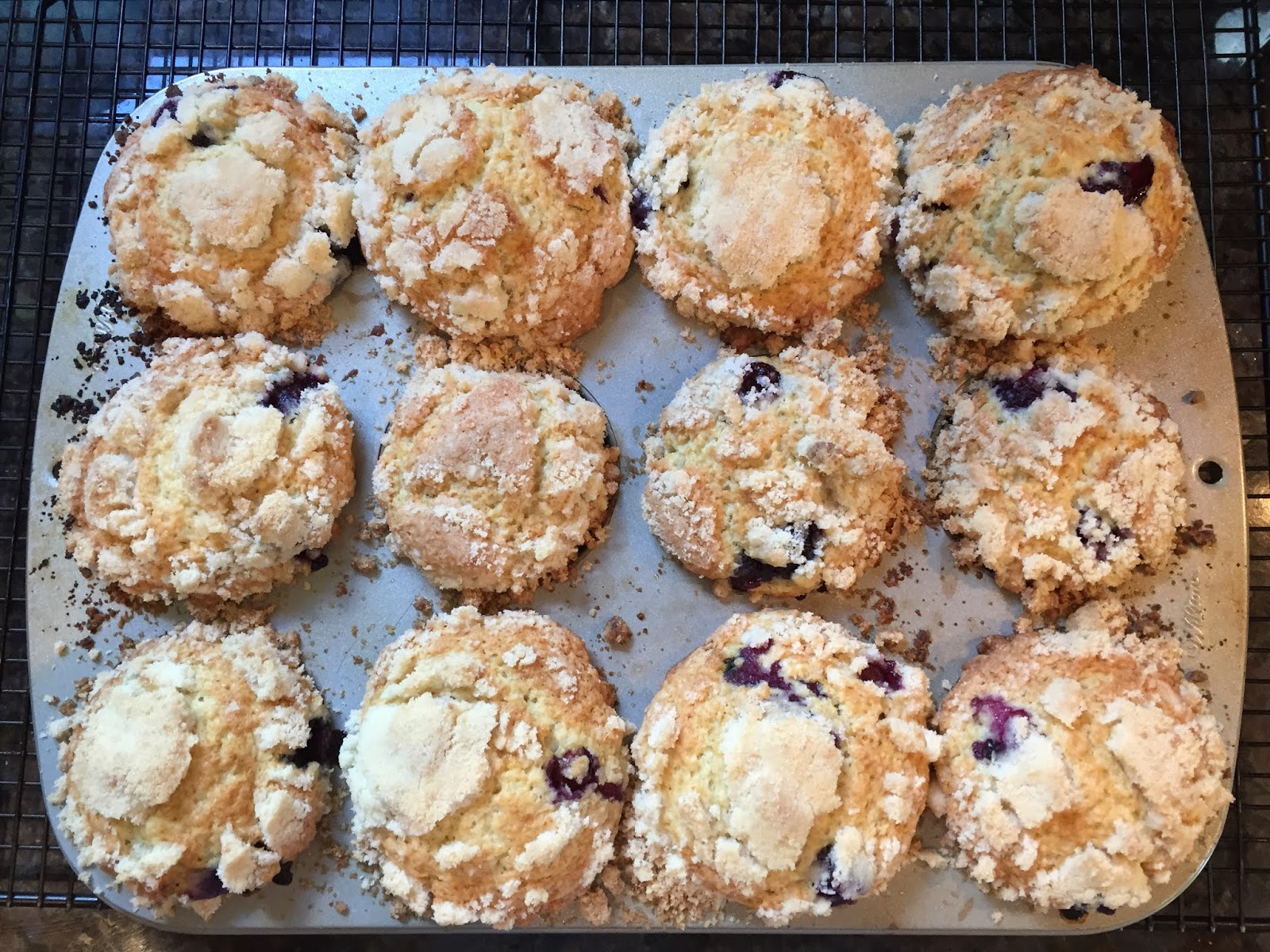 Edwin (1847) is just fine. After a few days rest in the fridge, he emerged yesterday, was fed a generous meal, and today morphed himself into Blueberry Muffins with an opulent crumb topping.
