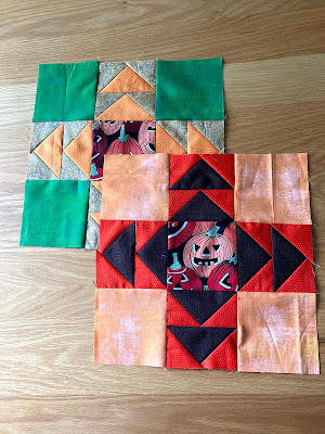 I made the Bee blocks for July's Queen -- I imagine she plans to have this quilt finished and ready to enhance her decor in October. She sent each participant the fussy cut centers and we supplied the rest of the bits from our stashes. These were fun, easy blocks to make.